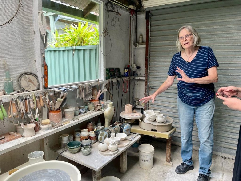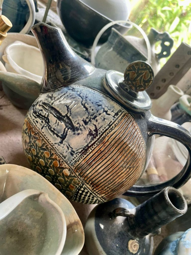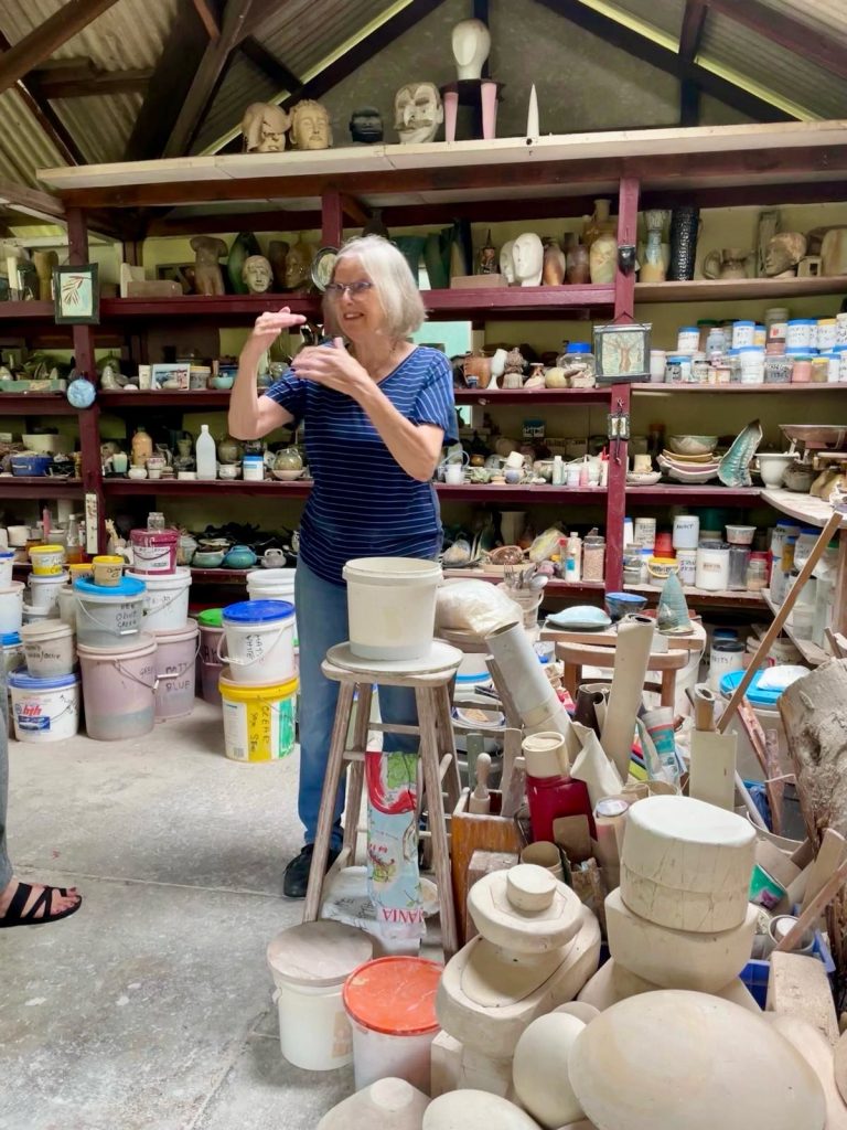 Arriving from Dartmouth, S. Devon, UK in the late 1966, my love of nature followed through from the rolling hills of Devon to the vast veldt of Africa to the weathered shores of Australia and into inspiration of my pottery over many years. I spoke about this to the lovely group who came to my Open Studio day and they saw how my pottery forms progress from slabs, to coils to thrown ware. Then onto glazing where I have all the base materials and formulate and mix my own glazes which are sieved several times and then applied and fired in my electric kiln. Depending on the aesthetics I require I do have access in the winter months to a great wood fired kiln near the Hunter Valley. We then shared some tea on my back veranda and then it was time to end the couple of hours together. Will also add that I graduated from TAFE at Brookvale in 1986 and then taught for 27 years at the Ku ring gai Art Centre in Roseville. Thanks for all that cam along. Nicky the Potter!!
